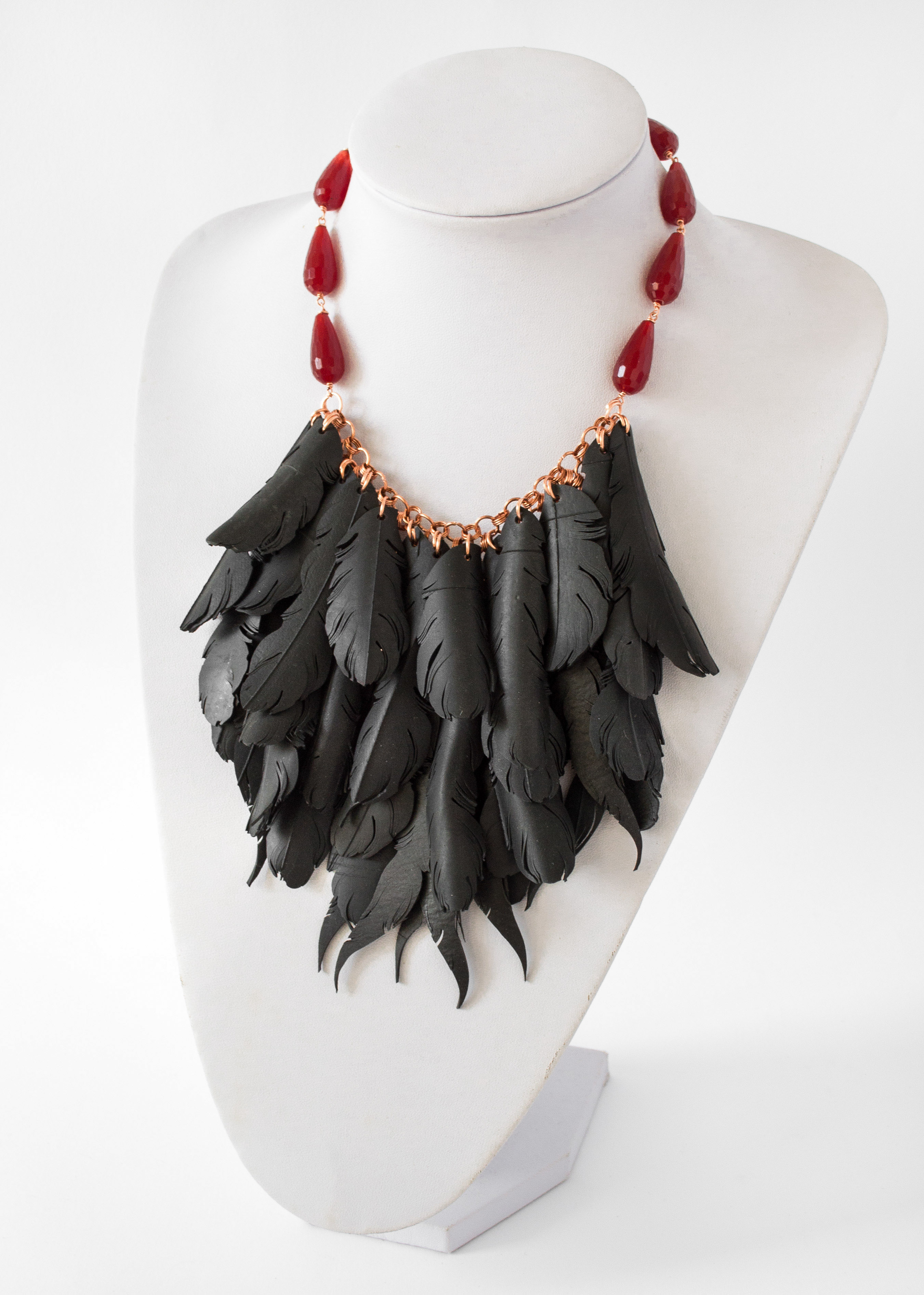 collana piume corniola rossa